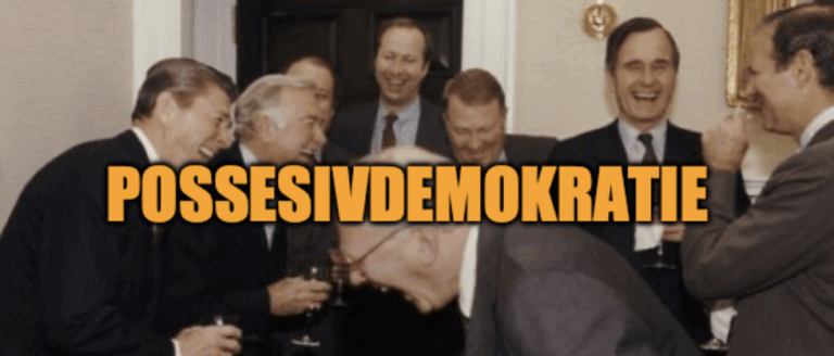 Das Ganze ist jedoch noch steigerbar, wie sich zuletzt immer deutlicher herausstellte. Die eingesetzten Herrscher machen nicht einmal einen Hehl daraus, sondern kommunizieren ihr Selbstverständnis ganz offen, wenn auch mit anderen Begriffen als allzu anrüchigen und verbrauchten. Mausfeld wies zutreffend darauf hin, dass die Formulierung „unsere Demokratie“ sehr bewusst gewählt ist. Es ist deren Demokratie und folgerichtig verleihen sie ihr auch ein besitzanzeigendes Fürwort, ein Possessivpronomen: unsere! Es ist eine Possessivdemokratie.